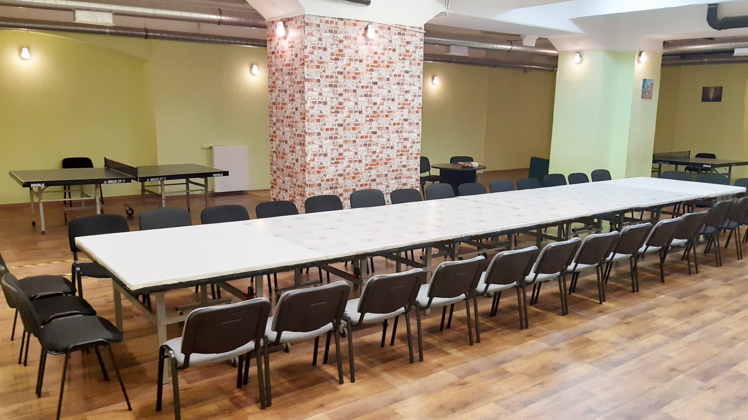 7 pingpongasztallal, teljes felszereléssel, székekkel, asztalokkal, darts részleggel, zárt körben.